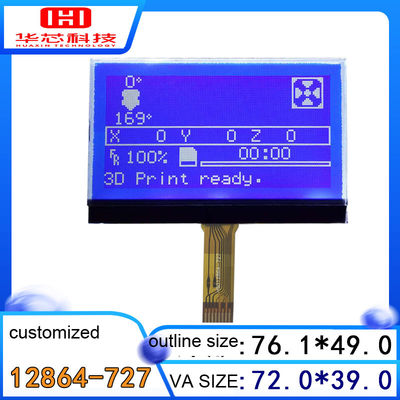 ESHX12864-727 è STN blue dot maxtrix lcd modules 128x64 dots 1/64 duty,1/9 bias,VOP=9.0V, modalità display è STN(BLUE)/TRANSMISSIVE/NEGATIVE e angolo di visione è 6:00 CLOCK,IC di guida è ST7567,8 pin con retroilluminazione bianca, il tipo di montaggio è COG